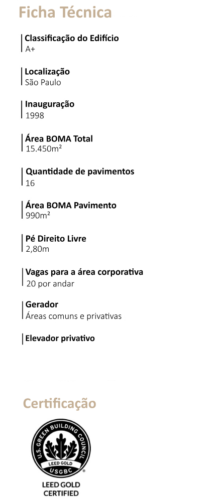 A Market Place Tower 2, inaugurada em 1998, três anos após o shopping center, oferece uma área BOMA total de 15.450m², distribuída em 16 pavimentos com lajes de 990m² cada. Entre os principais diferenciais do empreendimento estão a certificação de sustentabilidade LEED Gold, geradores que atendem 100% das áreas comuns e privativas, um elevador VIP e 20 vagas de estacionamento por andar. Além disso, a torre beneficia-se das conveniências proporcionadas pela integração com o Market Place Shopping Center.